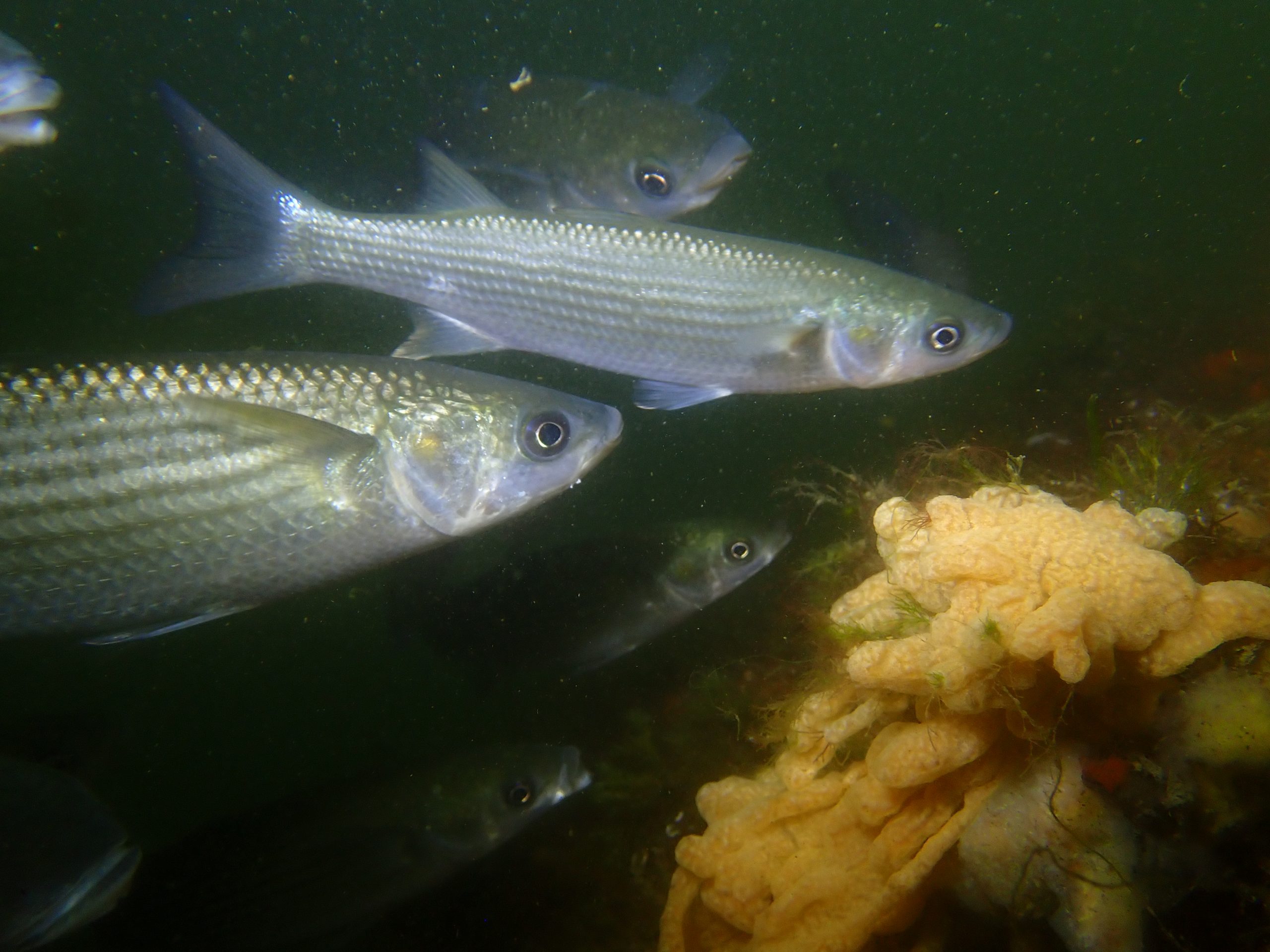 Autour du navire, les plongeurs ont croisé de nombreux bars, mulets et sars, dans un environnement portuaire riche en faune.