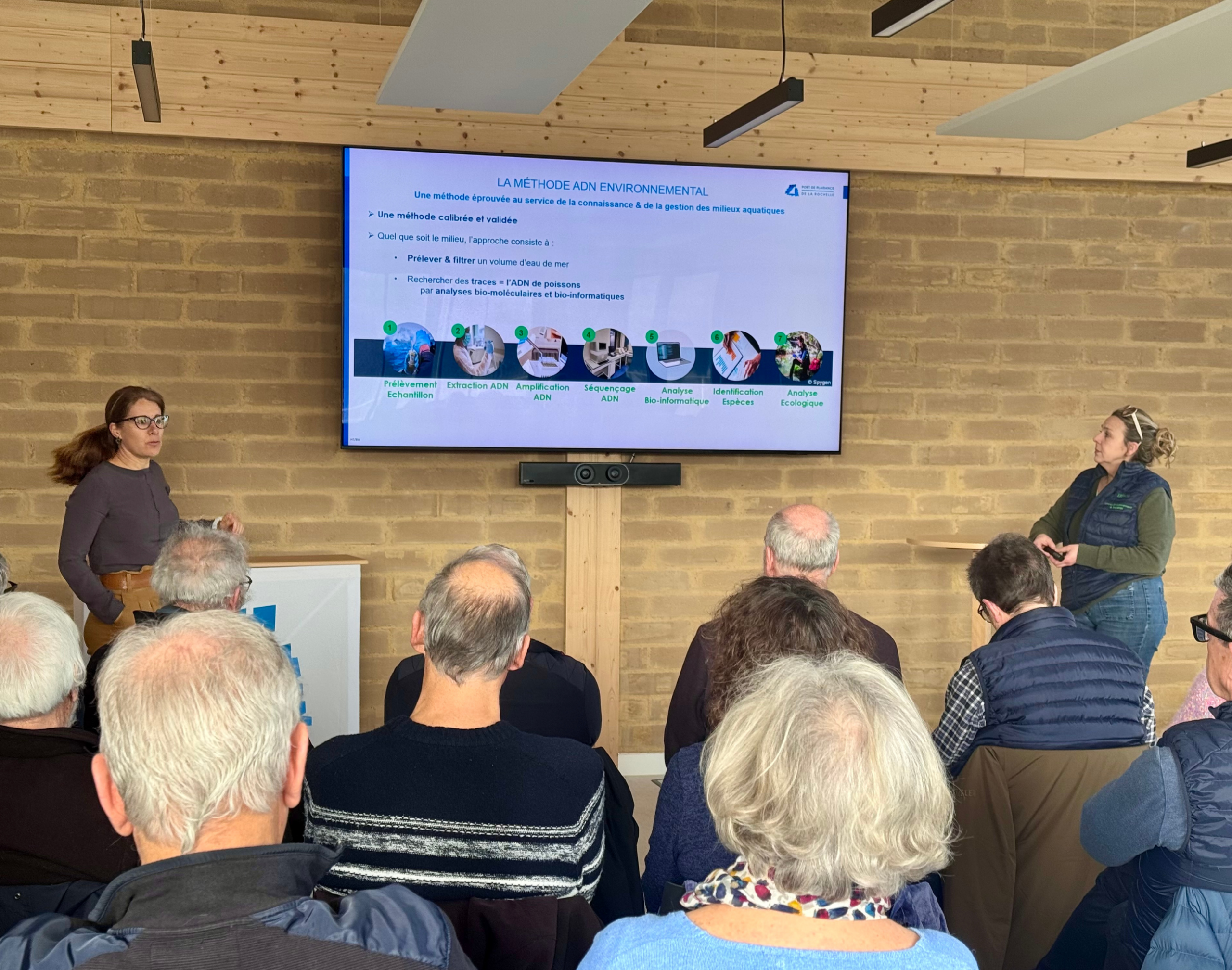 Leurs interventions ont permis de présenter la méthode de détection par ADN environnemental, de détailler les espèces identifiées au fil des campagnes et de partager les principaux enseignements scientifiques de ces travaux.